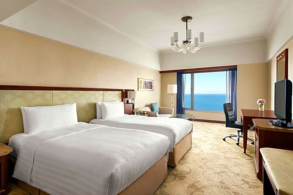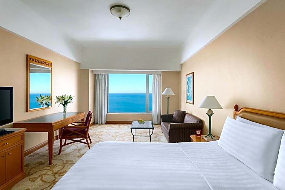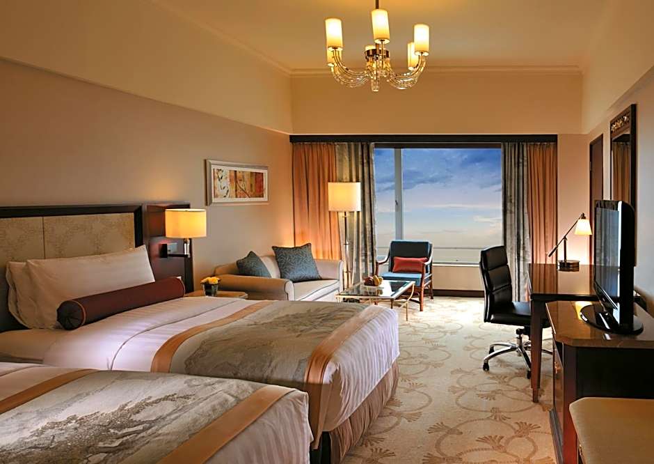 Luxurious one-bedroom suite with a spacious living room. Magnificent views of the Beibu Gulf. The bathroom with extra-large towels and exclusive Shangri-La toiletries.