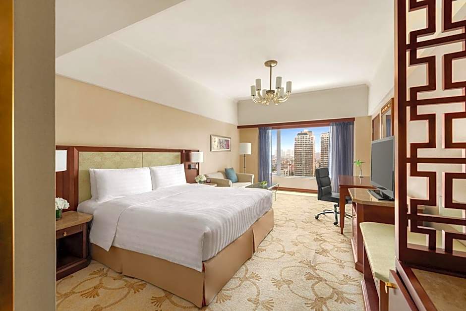 Impressive views of the Beihai cityscape. An indulgent bed with quality cotton linens. Bathroom with exclusive Shangri-La toiletries.